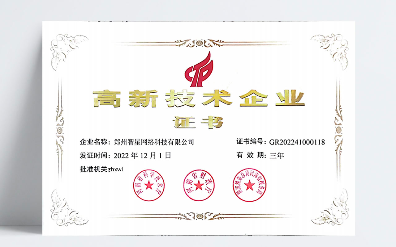 智星网络已获得国家级高新技术企业,科技型中小企业认定。